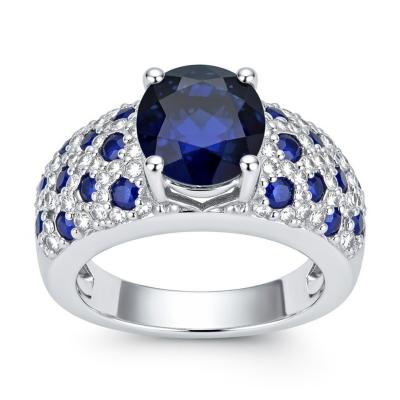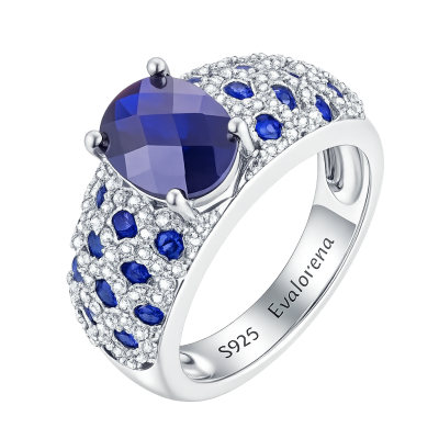 Classic 8g oval cut blue gem ring for women, rhodium plated for shine and durability. Ideal for engagement, wedding parties, and elegant daily wear.